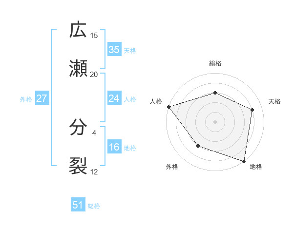 広瀬 分裂さんの総格は51画の3点!