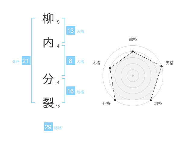 柳内 分裂さんの総格は29画の4点!