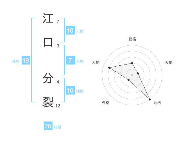 江口 分裂さんの総格は26画の2点!