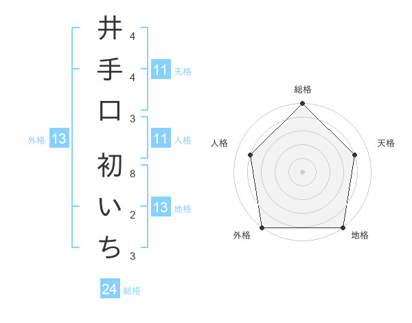 井手口 初いちさんを姓名の画数から五運を鑑定