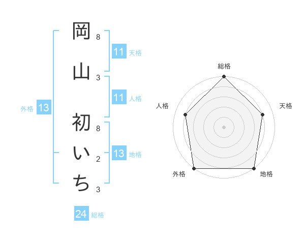 岡山 初いちさんを姓名の画数から五運を鑑定