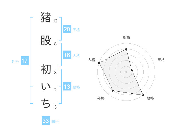 猪股 初いちさんの地格は13画の5点!
