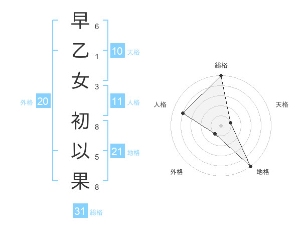 早乙女 初以果さんを姓名の画数から五運を鑑定