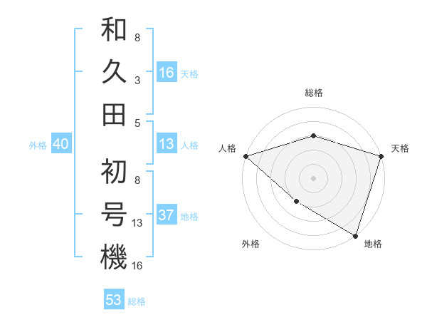 和久田 初号機さんを姓名の画数から五運を鑑定