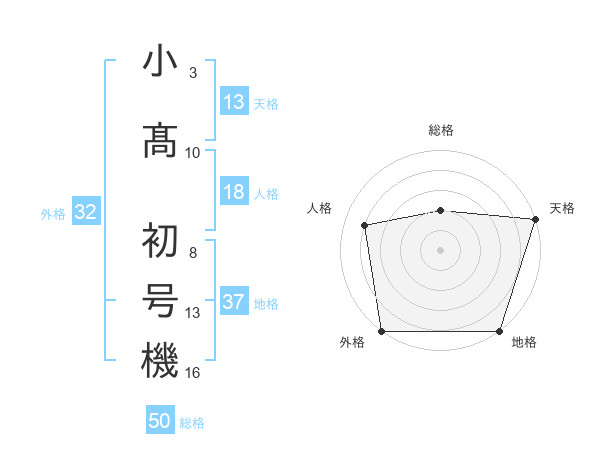 小髙 初号機さんの地格は37画の5点!