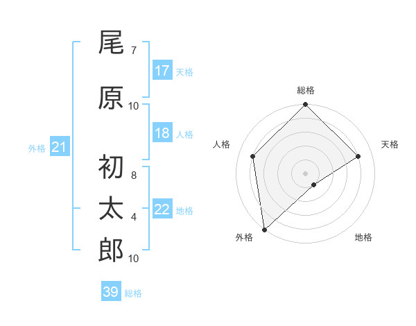 尾原 初太郎さんを姓名の画数から五運を鑑定