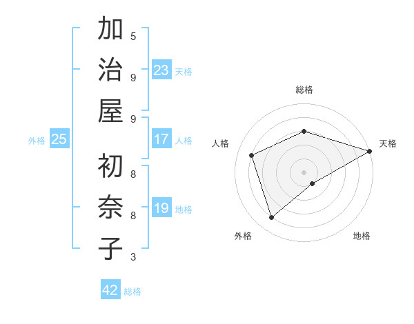 加治屋 初奈子さんの天格は23画の5点!