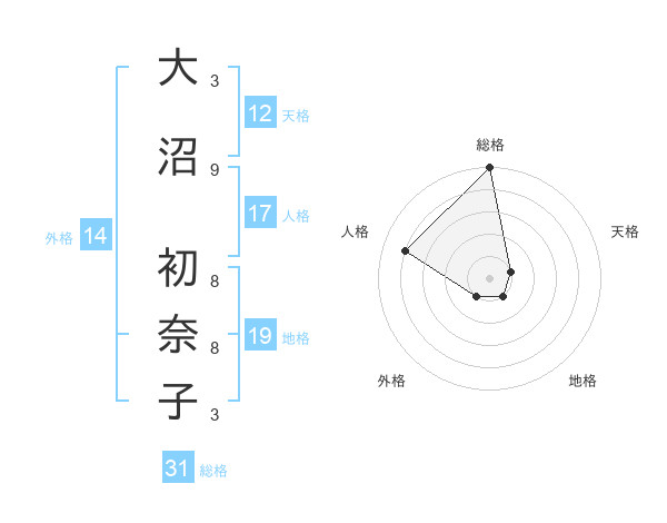 大沼 初奈子さんの総格は31画の5点!