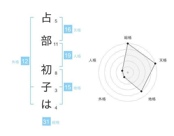 占部 初子はさんの天格は16画の5点!