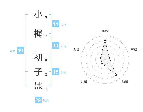 小梶 初子はさんの総格は29画の4点!