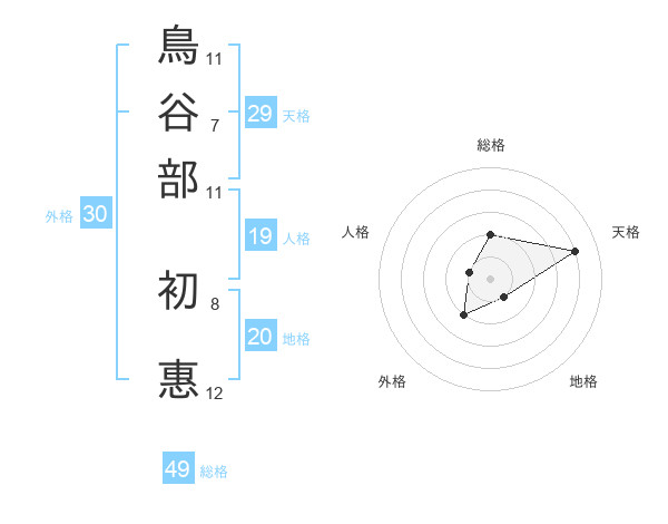鳥谷部 初惠さんを姓名の画数から五運を鑑定
