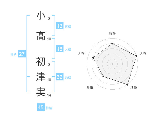 小髙 初津実さんを姓名の画数から五運を鑑定