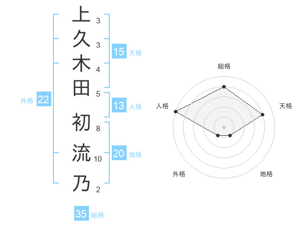 上久木田 初流乃さんを姓名の画数から五運を鑑定