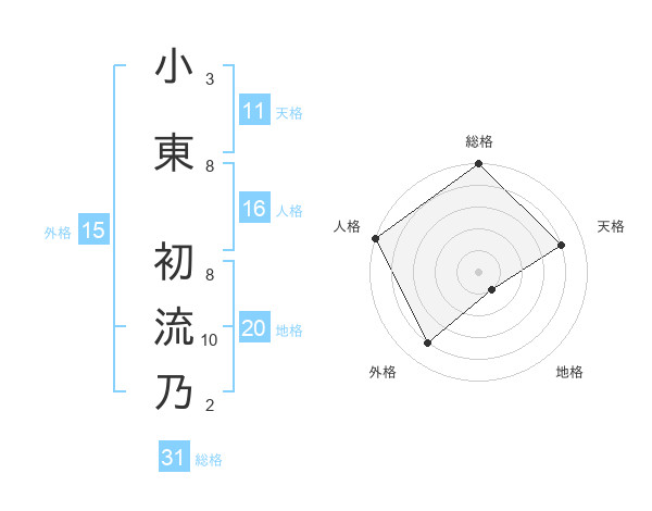 小東 初流乃さんを姓名の画数から五運を鑑定