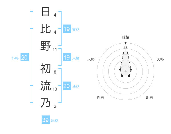 日比野 初流乃さんを姓名の画数から五運を鑑定