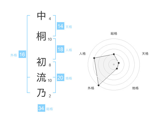 中桐 初流乃さんを姓名の画数から五運を鑑定