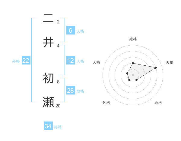 二井 初瀬さんの総格は34画の2点!