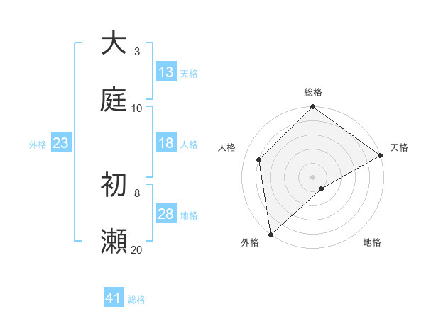 大庭 初瀬さんの総格は41画の5点!