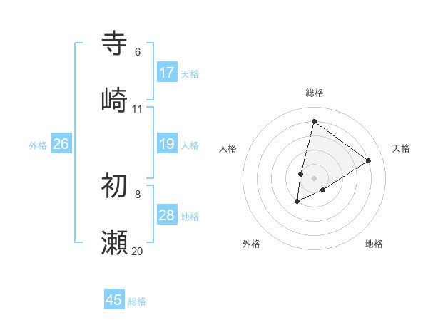 寺崎 初瀬さんの総格は45画の4点!