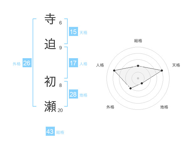 寺迫 初瀬さんの総格は43画の2点!