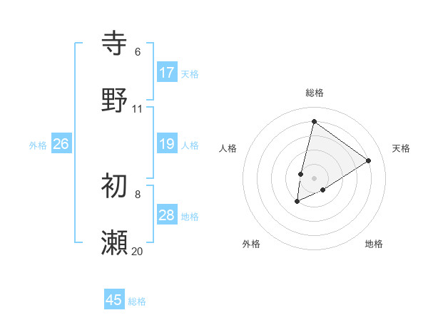 寺野 初瀬さんの総格は45画の4点!