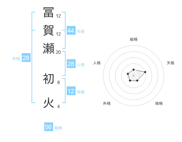 冨賀瀬 初火さんを姓名の画数から五運を鑑定