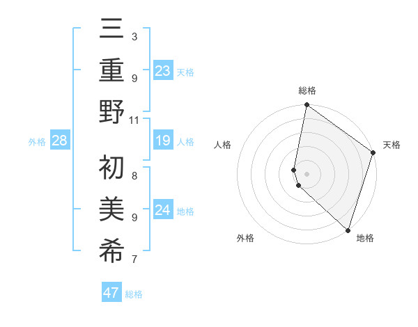 三重野 初美希さんの総格は47画の5点!