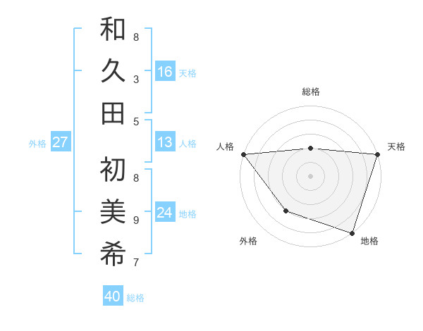 和久田 初美希さんを姓名の画数から五運を鑑定
