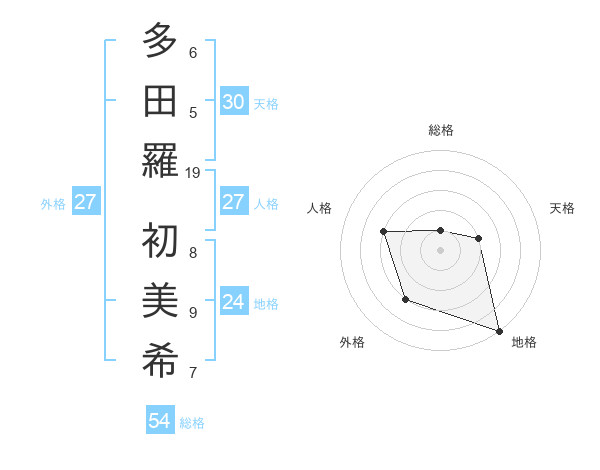 多田羅 初美希さんを姓名の画数から五運を鑑定