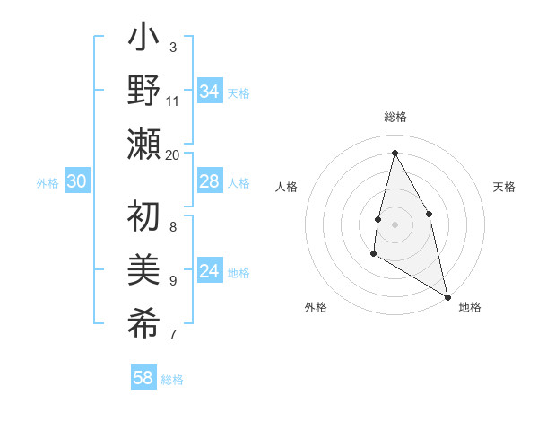 小野瀬 初美希さんを姓名の画数から五運を鑑定