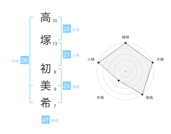 高塚 初美希さんを姓名の画数から五運を鑑定
