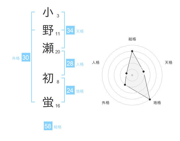小野瀬 初蛍さんを姓名の画数から五運を鑑定