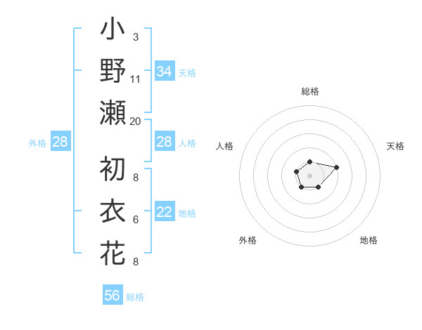 小野瀬 初衣花さんを姓名の画数から五運を鑑定