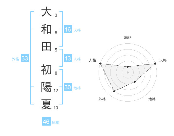 大和田 初陽夏さんを姓名の画数から五運を鑑定