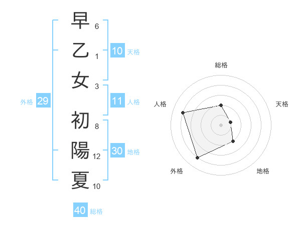 早乙女 初陽夏さんを姓名の画数から五運を鑑定