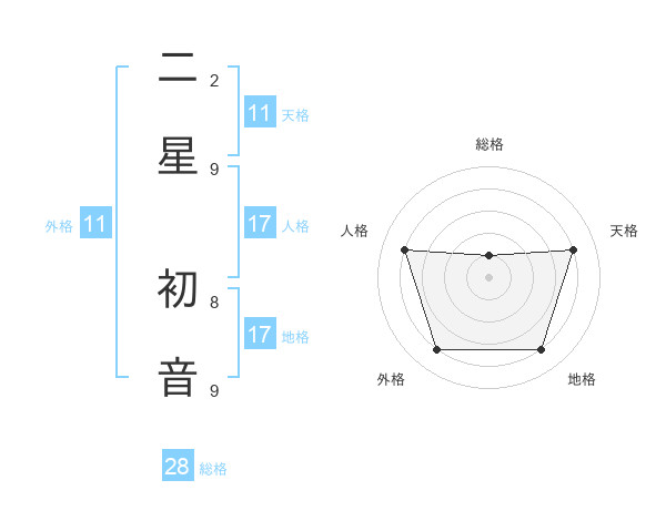 二星 初音さんの総格は28画の1点!