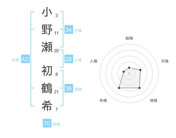 小野瀬 初鶴希さんの総格は70画の1点!