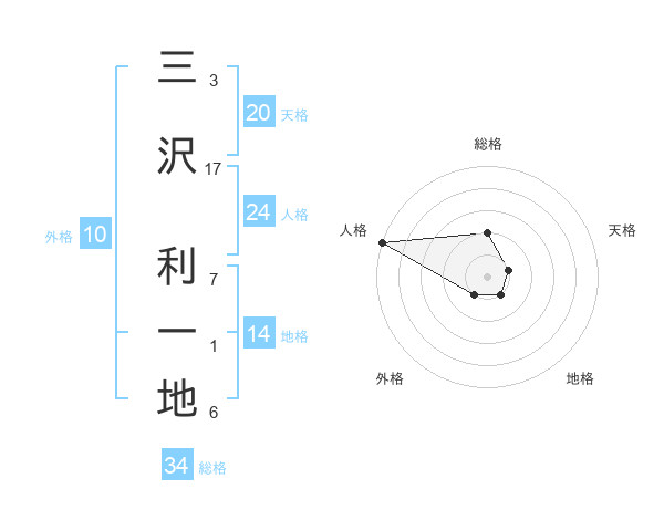 三沢 利一地さんの総格は34画の2点!