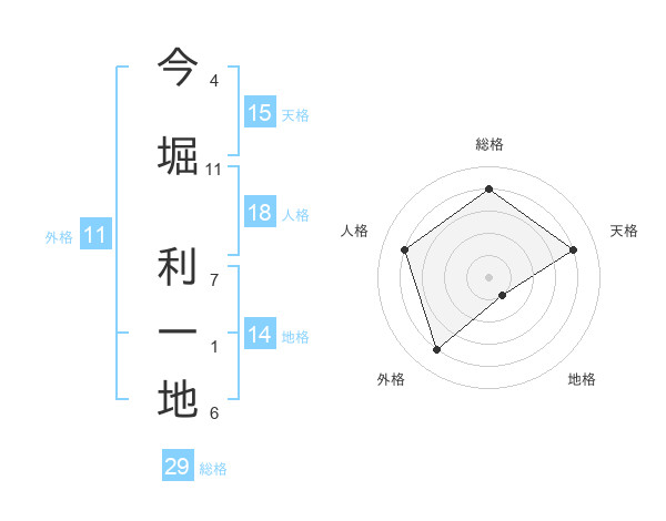 今堀 利一地さんを姓名の画数から五運を鑑定