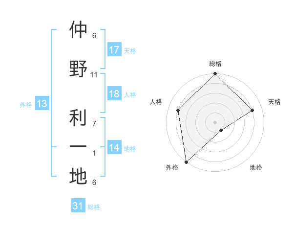 仲野 利一地さんの総格は31画の5点!