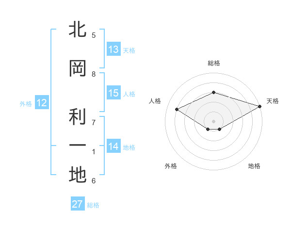北岡 利一地さんの天格は13画の5点!