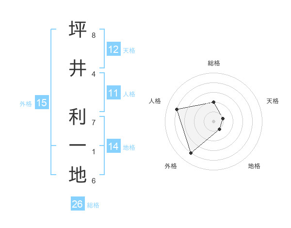 坪井 利一地さんの総格は26画の2点!