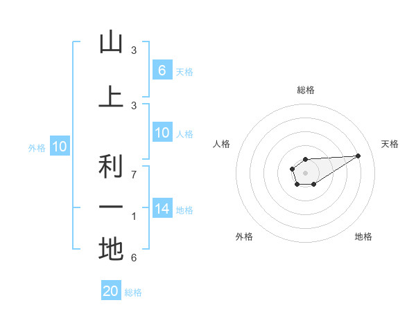 山上 利一地さんの総格は20画の1点!
