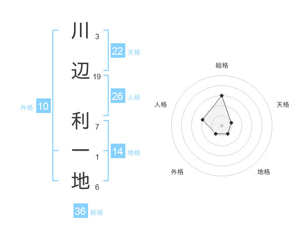 川辺 利一地さんを姓名の画数から五運を鑑定