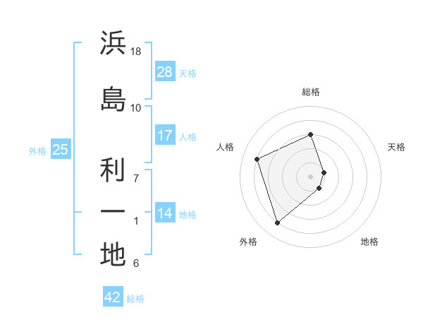 浜島 利一地さんを姓名の画数から五運を鑑定