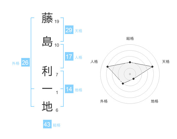 藤島 利一地さんの総格は43画の2点