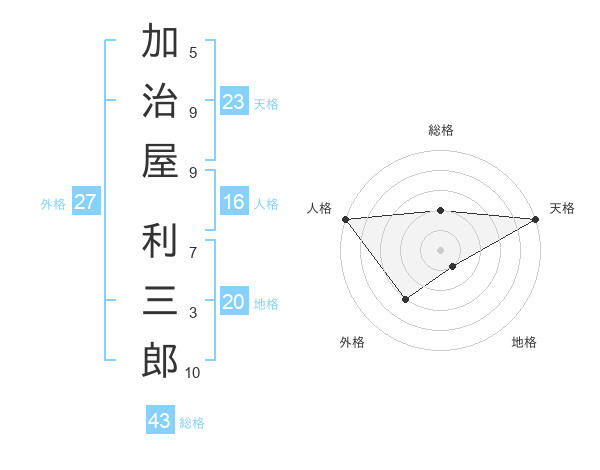 加治屋 利三郎さんを姓名の画数から五運を鑑定