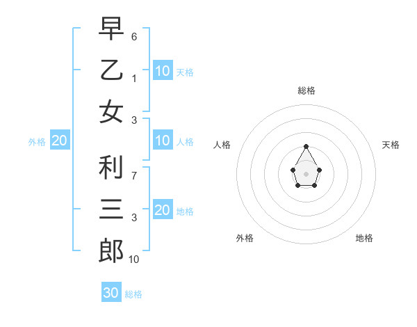 早乙女 利三郎さんを姓名の画数から五運を鑑定