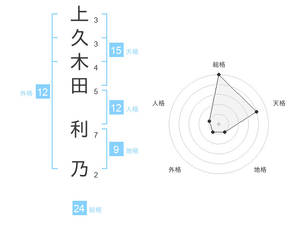 上久木田 利乃さんを姓名の画数から五運を鑑定