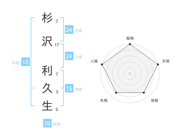 杉沢 利久生さんを姓名の画数から五運を鑑定